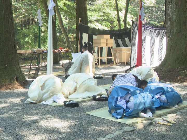 【動画で見る】伊勢神宮・内宮で「御船代祭」式年遷宮で使われる御用材を伐採する際の安全を祈願 平安装束着た小学生も参加