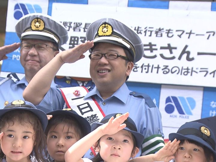 【動画で見る】キャイ~ンの天野ひろゆきさんが愛知県警中村署の一日警察署長に 反射材の活用など交通安全を呼びかけ