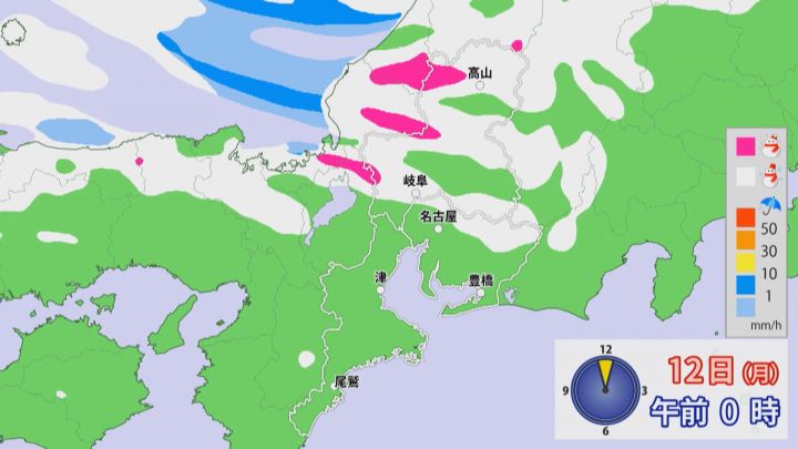 成人の日の月曜日は、名古屋市内でもうっすら雪が積もる可能性があり、岐阜の山間部では警報級の大雪となる恐れもあります。