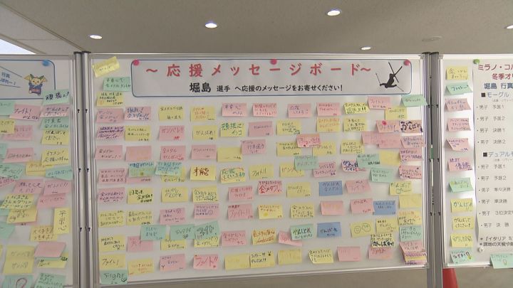 堀島選手の故郷・池田町の総合体育館には、応援ボードが設置され、既にメッセージで隙間なく、埋まっていました。