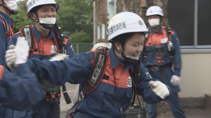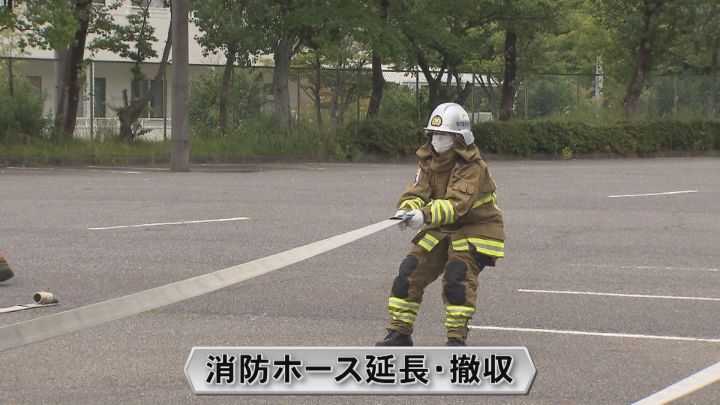 チームで助け合ってこそ完成する1つの訓練。体力差も団結力で乗り越えています。「女性や子供に寄り添える消防隊員になりたい」。沖田さんは将来の姿をイメージしています。