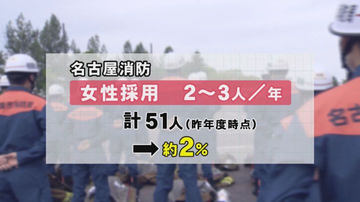 名古屋消防での女性の採用は例年2、3人。2020年度までで51人と、女性の割合はわずか2%でした。