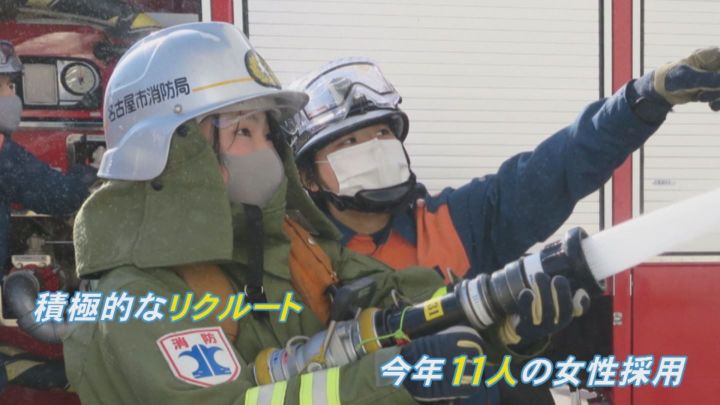 国は、全国の消防署の女性消防職員の割合を5%にするよう呼びかけ、名古屋消防でも積極的なリクルートを行い、今年は11人を採用しました。