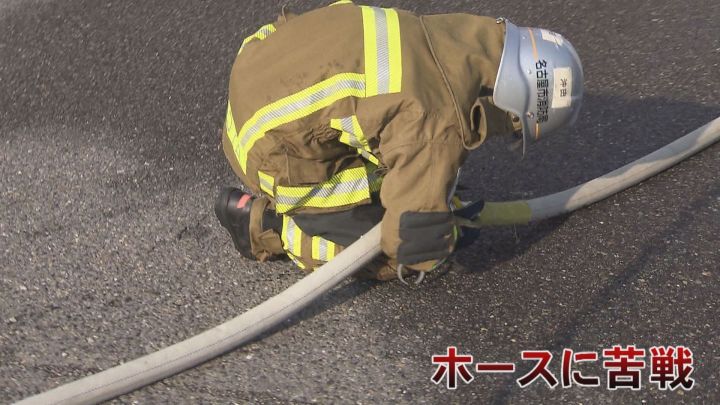 放水訓練では、顔に水がかかり、重いホースを外す作業に四苦八苦…。沖田さんは、消防学校に入ってから高いところがあまり得意でないことに気が付いたといいます。