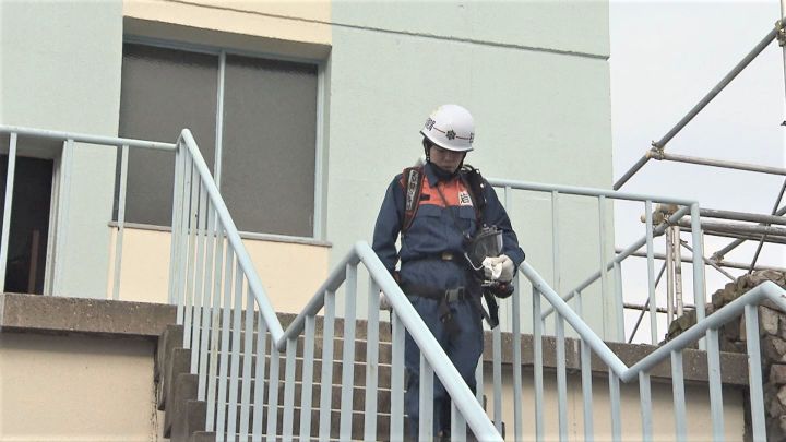 18歳の岩下さんがこの日挑んだのは、「11階建て訓練タワー」。重さ10キロの空気ボンベを背負いながら、タワーを5往復する過酷な訓練です。