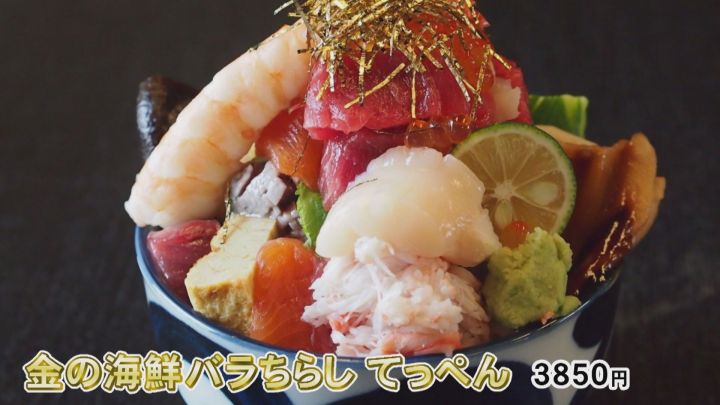 金メダルへの長い道のりを山に見立てた豪華な「金の海鮮バラちらし」。