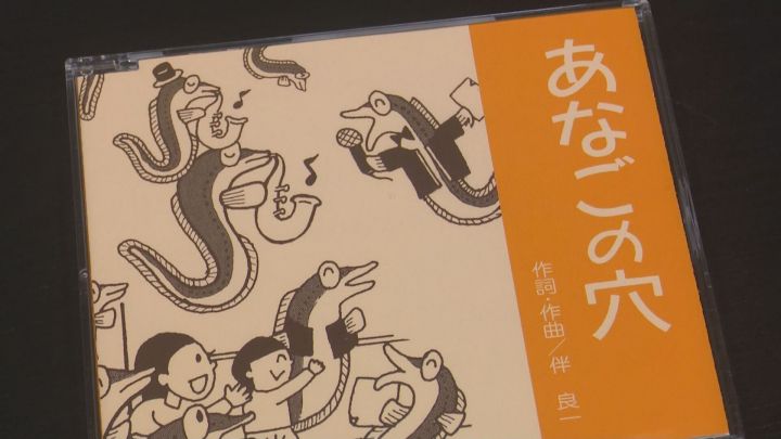 店主が自ら作詞をした可愛らしい曲調のアナゴソング「あなごの穴」(1998年)は、遠い海から旅してやって来るアナゴの生態を、明るいリズムにのせて歌い上げます。当時、地元の保育園児にも歌ってもらったといいます。