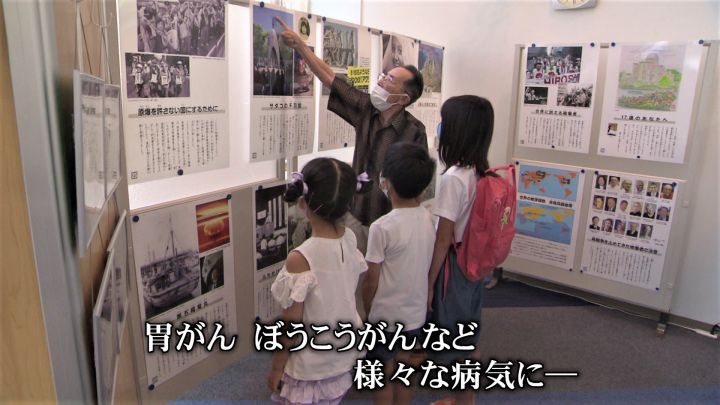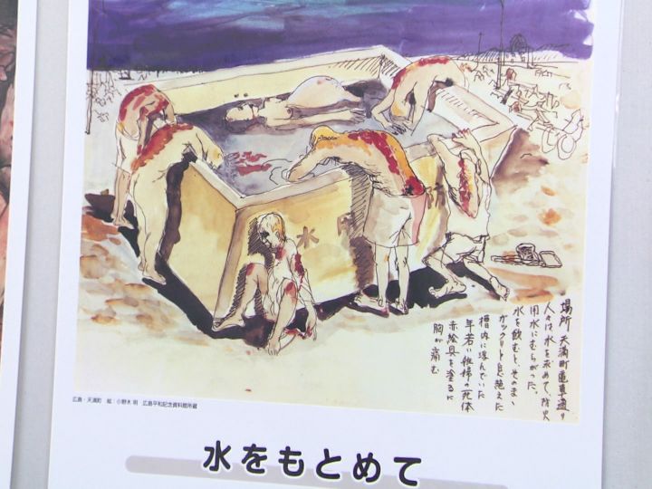 「(絵を指して)もう熱いもんだから、水槽に飛び込んでみんな死んじゃった。恐ろしいね、核兵器の恐ろしさ」