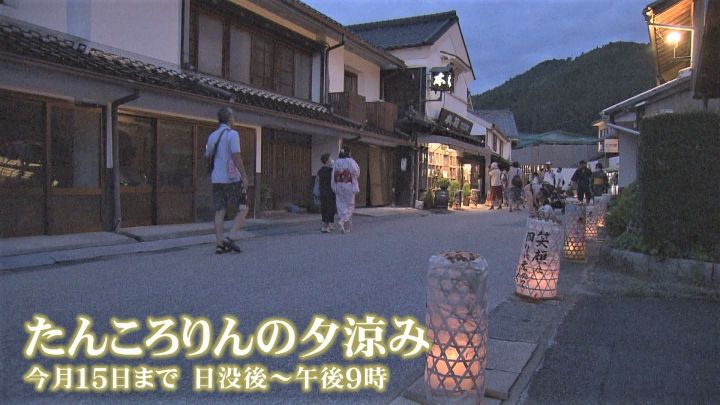 愛知県豊田市足助町の夏祭り「たんころりんの夕涼み」では、伝統工芸品の行灯“たんころりん”が街道沿いに並び、人々は外に出て夕涼みを楽しみます。