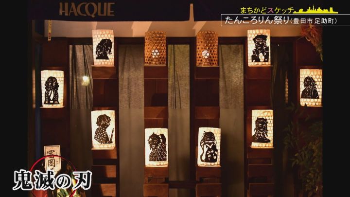 ■夜の町に浮かぶ「鬼滅の刃」…江戸時代の建物と令和のアートのコラボ