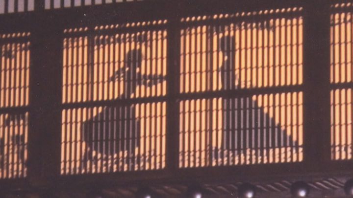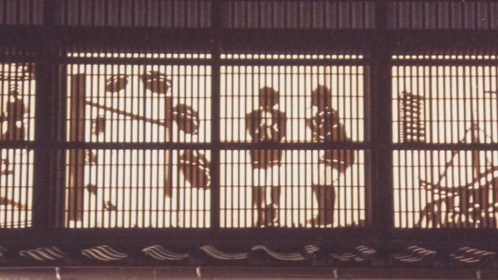 「(建物の)前のところは格子になっているんですよ。障子に、(絵を)切り抜いて貼って、奥で光をあてるとこういう風に出てくるんです」