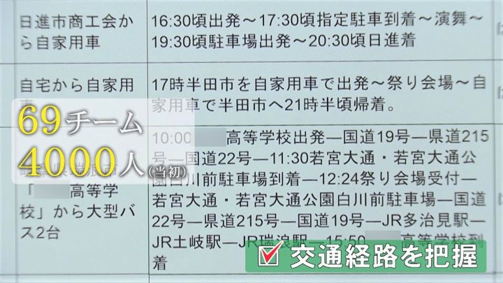 さらに、久屋大通公園でステージに立つ69チーム・約4000人の参加者全員の自宅から会場までの交通経路を把握。