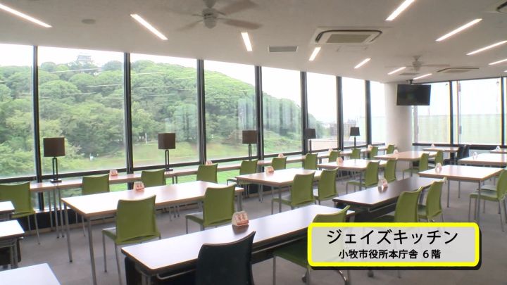 小牧市役所本庁舎の6階にある、誰でも自由に利用ができるレストラン「ジェイズキッチン」は、うどんやそばが300円など、お値打ちです。