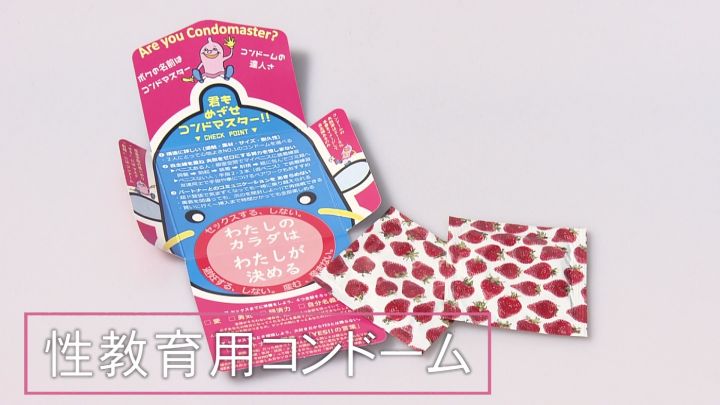 性教育用に作られたコンドームは、練習のため2個入り。QRコードを読み取ると、使い方講座や医師が解説する動画を見ることもできます。