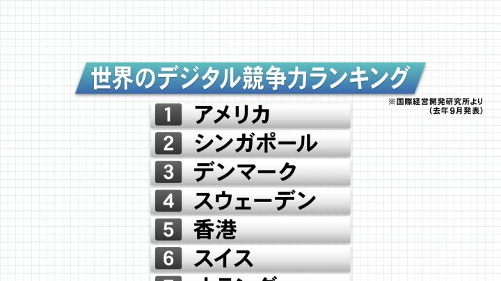 2020年9月に発表された「世界のデジタル競争力ランキング」(「国際経営開発研究所」調べ)では、1位はアメリカで、5位に香港、8位の韓国など、アジア各国も上位にあります。
