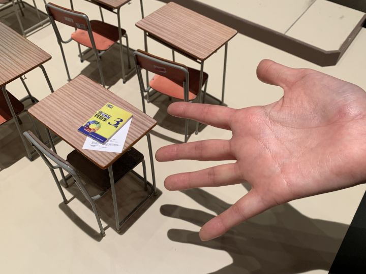 机の色も、椅子の裏のシールも、机の上に置かれた参考書も、驚くほどリアルに再現されている。