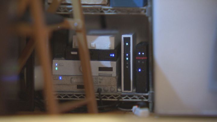 Wifiルーターの点滅やPCの画面など細かい見どころが詰まっていて、長く見ていても飽きさせない。