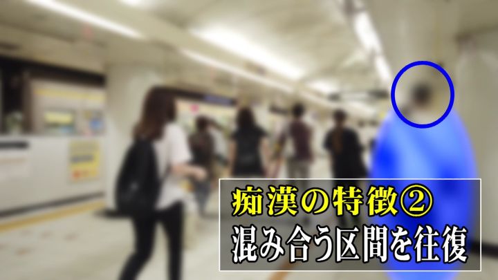 複数の捜査員が、この男が少なくとも4往復している様子を確認。ターゲットを見つけるために混み合う区間を何度も往復するのも、痴漢の特徴的な動きの一つです。