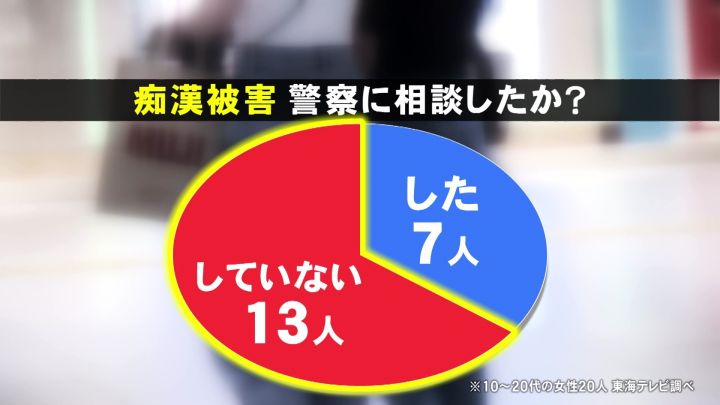 痴漢の被害に遭ったことがあると回答した女性20人のうち、半数以上の13人が警察に相談していないと答えました。痴漢は現行犯以外でも検挙できますが、恐怖もあって諦めているのが実態のようです。