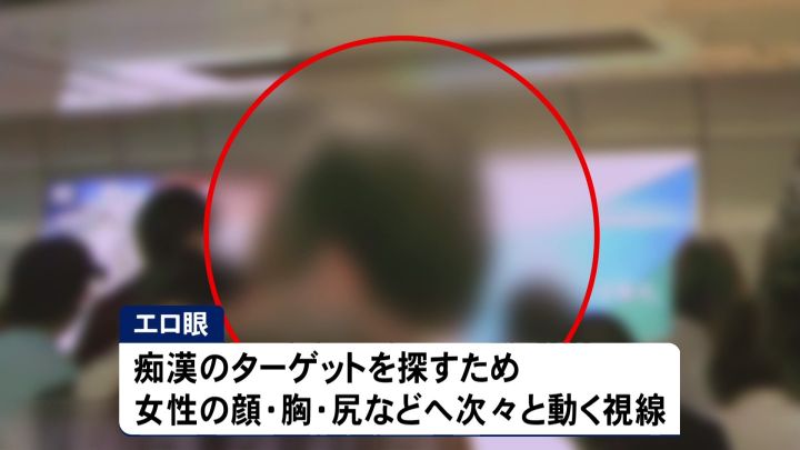 何かを探すように辺りをキョロキョロ…。捜査員たちの間で“エロ眼”と呼ばれる視線です。女性の顔や胸、お尻などへ視線が次々と動くのが特徴で、痴漢がターゲットを探す時によく見られます。実はこの男…。