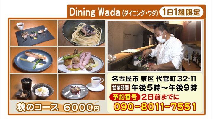 名古屋市東区に、15坪の店内にカウンター5席の小さな店があります。有名ホテルの料理長だったシェフが腕を振るうこの店は、1日1組限定です。「黒毛和牛のポワレ」や「フォアグラのミルフィーユ仕立て」など…、お客さんの好みに合わせて作られる本格的な料理は、密かに話題となっています。