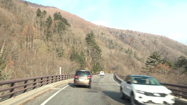 雪を求めて名古屋から車で3時間、岐阜県高山市にある奥飛騨温泉郷「平湯(ひらゆ)温泉」へ。11月も半ばの平湯温泉は、紅葉も既に終わりそろそろ雪がチラつき始めてもおかしくない時季ですが、周りの山にもまだ雪は見られません…。