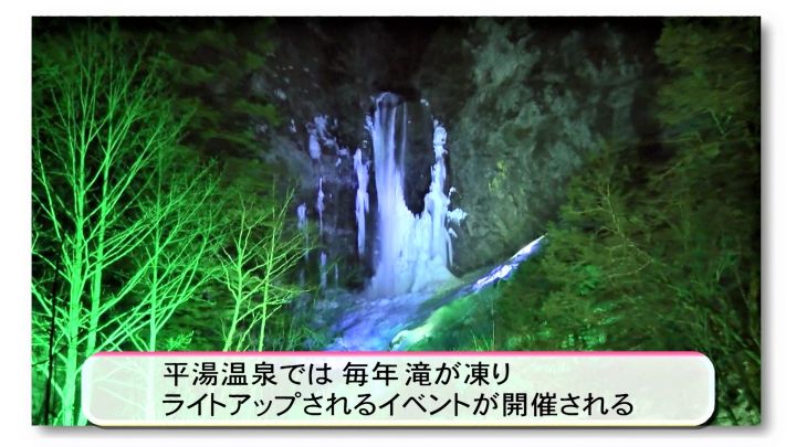 豪雪地帯である奥飛騨温泉郷の平湯温泉では、真冬になると滝が凍りライトアップされるイベントも開催されますが、今は雪はおろか氷も見ることができません。