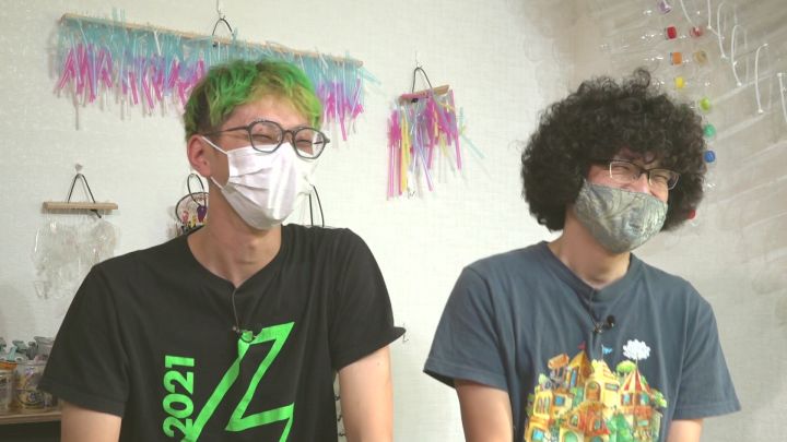 日用品や廃棄されたもので楽器を作り、イベントで演奏をしている「kajii」は、アフロヘアーがトレードマークのクマーマさんと、モノ作りが得意な創(そう)さんの2人組。