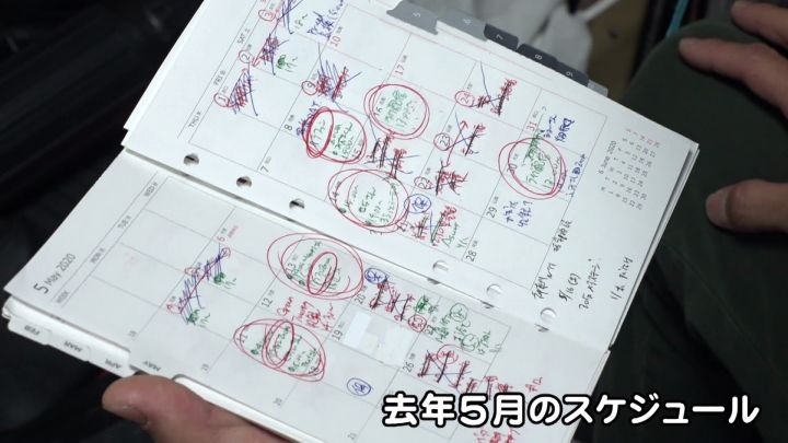 「2020年の手帳、バツがうってあるところが無くなっちゃったところで、5月がひどい。ぐちゃぐちゃですね」