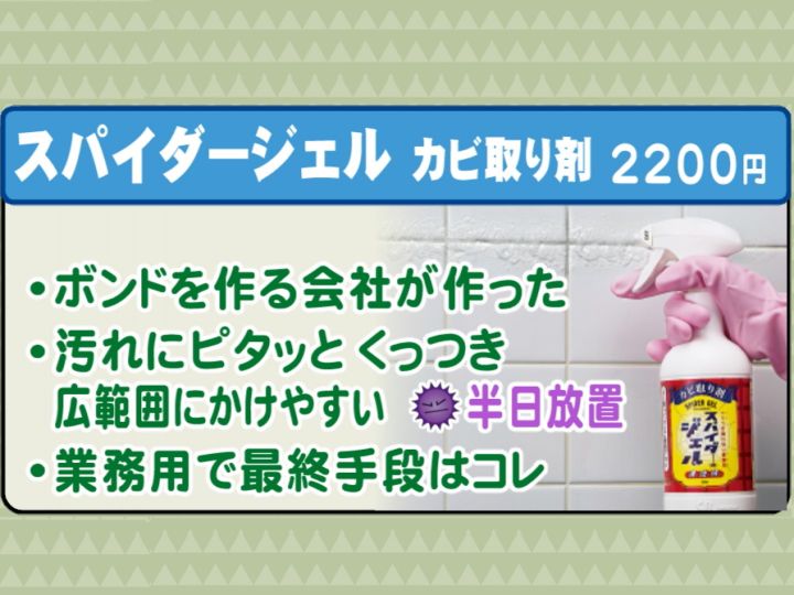 大掃除で集中的に退治したいのは、カビです。ボンドを作っている会社が作ったカビ取り剤です。