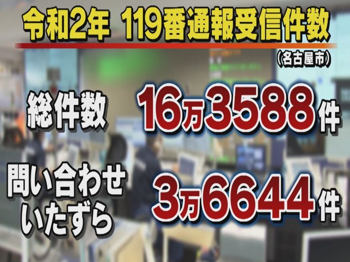 この日の取材中には無言電話も…。名古屋市の119番通報は年間およそ16万件ありますが、このうち、問い合わせやいたずらなどは2割以上を占めています。