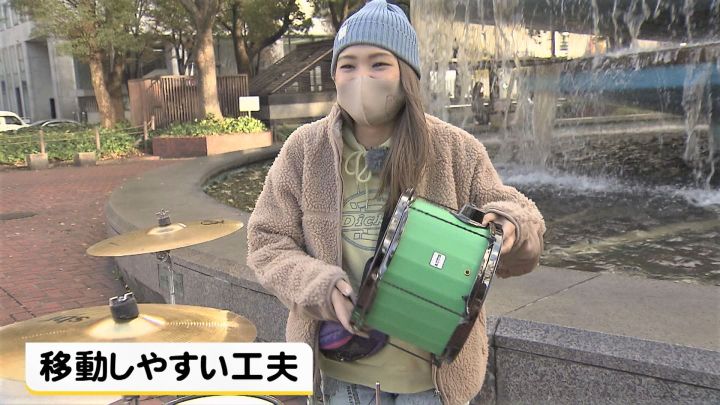 「音楽に気軽に触れられ、偶然の出会いがあるのがストリートの魅力」と語るリエイさん。一方で、音が小さめのドラムを使うなど「騒音」には気を付けています。さらに、なるべくコンパクトなドラムを使用することで、簡単に移動できるようにしていました。その理由は…。