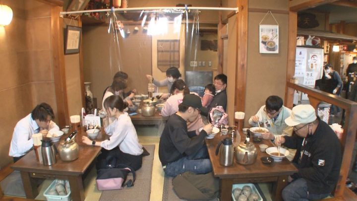 100年以上の歴史を持つ岐阜の有名店「更科」には、平日にも関わらずたくさんのお客さんが訪れます。