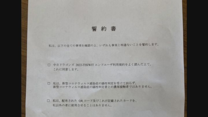 コロナ下で迎える2回目のキャンプは、2年ぶりの有観客にし、ファンが球場に訪れますが、入口ではアルコール消毒や検温はもちろん、名前と電話番号、健康状態や濃厚接触者になっていないかなど誓約書にサインが必要です。徹底した感染対策の中で入場していました。