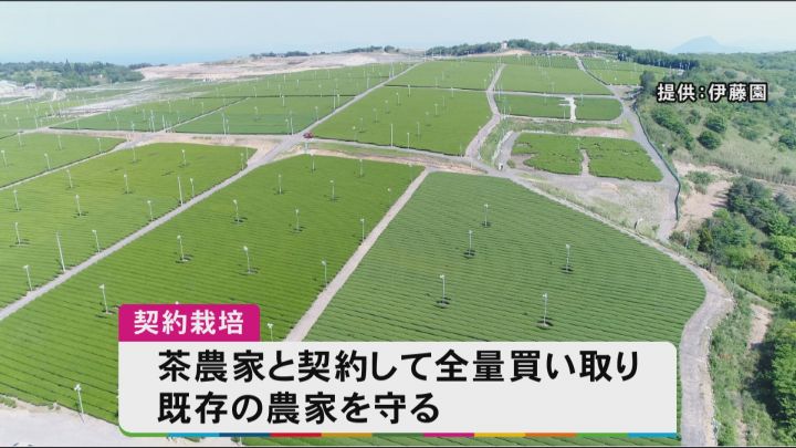 後継者不足によりお茶農家が減少し、国内のお茶の栽培面積は、この40年で36パーセントも減っています。その中、国内の緑茶生産量の4分の1を取り扱っている大手飲料メーカーの伊藤園は、産地の育成事業を推進していて、農家と契約して全量買い取りをするなど、お茶農家をサポートしています。
