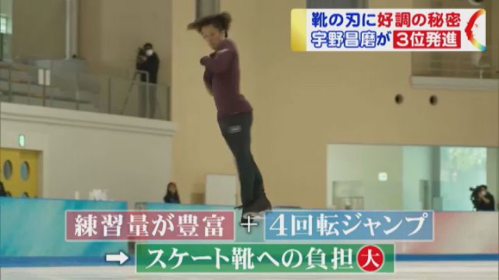 宇野選手は練習量が豊富な上、4回転ジャンプなどスケート靴への負担がかなり大きく、ブレードが折れたり曲がったり。これまでは3週間ほどで履きつぶしていました。