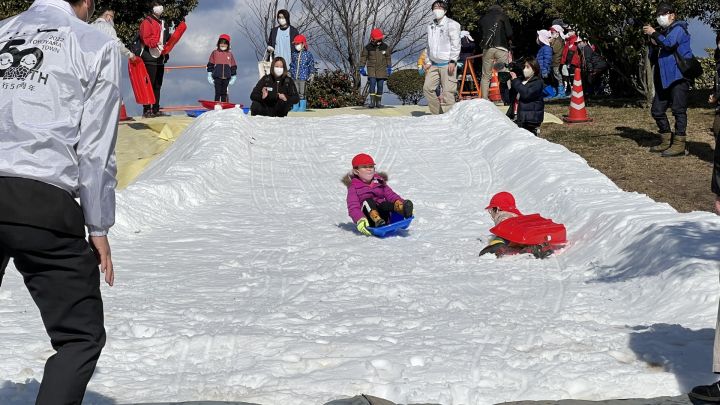 国内有数の豪雪地帯、新潟県妙高市から2月18日、愛知県豊山町に大量の雪が届けられ、子供たちが雪遊びを楽しみました。