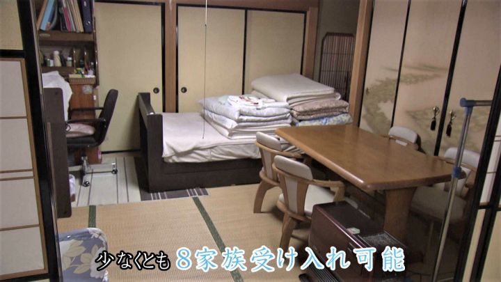 避難所には8つの部屋があるため、少なくとも8家族は受け入れが可能です。