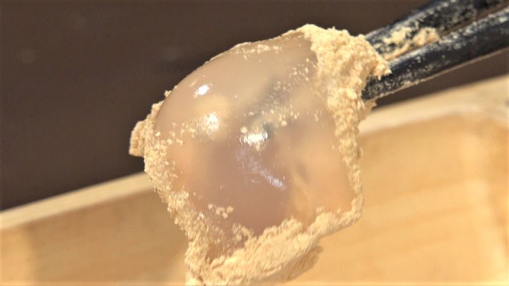 1時間以上かけて煮詰めたわらび餅は、1日寝かせて完成。大勢の舌を魅了しています。