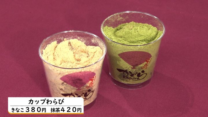 2022年1月末、名古屋市中区の大須商店街にわらび餅の専門店「かぐら屋」はオープンしました。この店は愛知県稲沢市にあるわらび餅で有名な喫茶店を営む女性が出店。大須への出店は、2009年に亡くなった女性の夫との夢でした。食べ歩きできるようカップに入ったモチモチのわらび餅は、すぐにリピーターが付くほどの人気となっています。