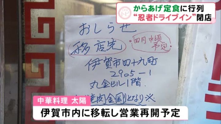 ドライブインの閉店後は、伊賀市の市街地に移転して営業を再開する予定ですが…。
