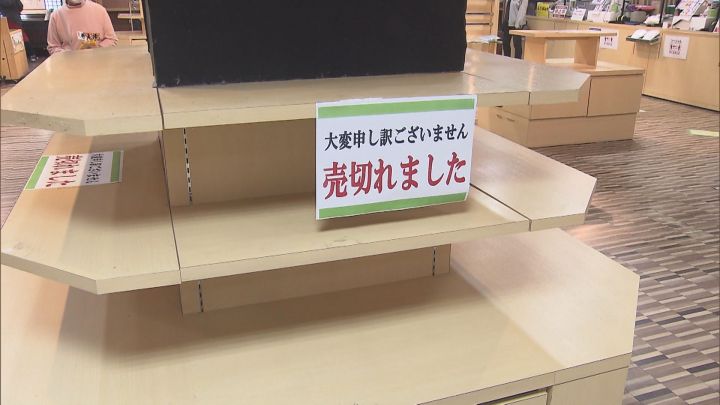 夕方になると、名産品の販売コーナーでも次第に売り切れの札が目立つようになり…。