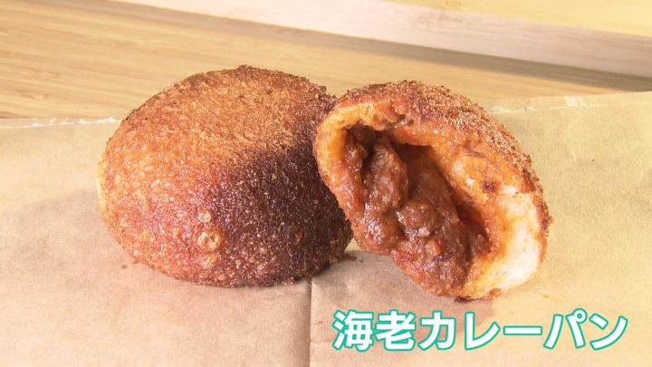 店では、エビの殻を乾燥させ粉末にしたものをパン生地に加えたカレーパンに…。