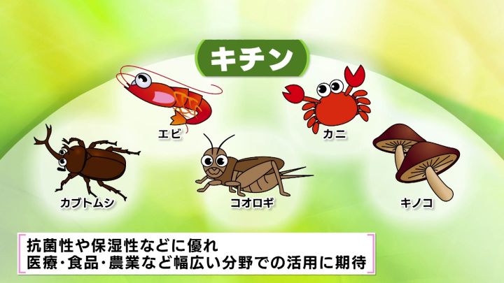 そこで再び浮上したのが、過去の研究データが残っていたエビの殻の成分「キチン」でした。エビやカニの甲羅、昆虫やキノコにも含まれているキチンは、抗菌性や保湿性などに優れた素材として、医療や食品など幅広い分野での利用が期待されています。