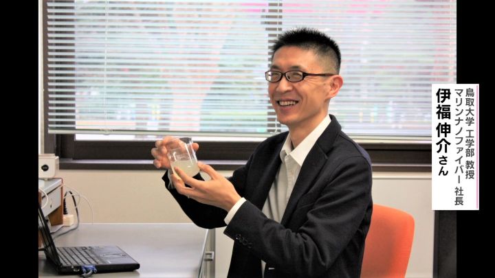 商品化に成功していたのは、鳥取大学工学部で環境に負荷をかけない素材の研究を続ける伊福伸介(いふくしんすけ)教授が率いる最先端のベンチャー企業「マリンナノファイバー」。