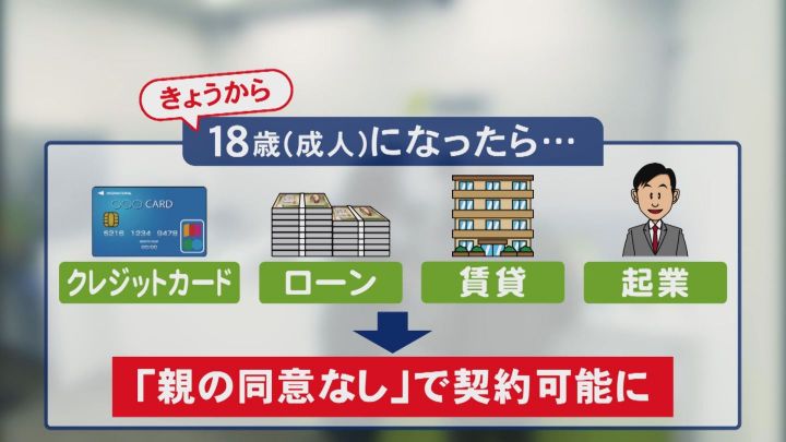 井上さんに追い風となったのが、4月1日から変わった成人年齢の引き下げです。民法の改正で18歳から成人となることで、「クレジットカード」や「ローン」、さらには「起業」に至るまで、“親の同意なし”で様々な契約ができるようになります。