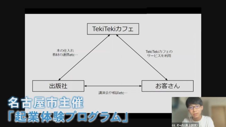井上さんは今後の起業を見据えて、今は「経験を積む時期」と様々なことにチャレンジしています。2021年には、名古屋市主催の「起業体験プログラム」で中高生が集う「参考書専門の本屋」を提案。
