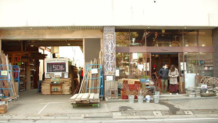 店内に並ぶのは、解体した建物や空き家から引き取った古い器や、古い家具、なつかしい暮らしの道具など。そして、柱や床板などに使われていた“古材”もあります。