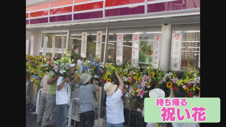 開店したお店に飾られ、オープンと同時に近所の人が持っていく「祝い花」。