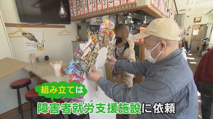 組み立ては障害者就労支援施設の利用者に依頼。外に出てお客さんたちの喜ぶ顔を見ることができる作業で、定着すれば仕事の幅も広がるのではないかと考えています。